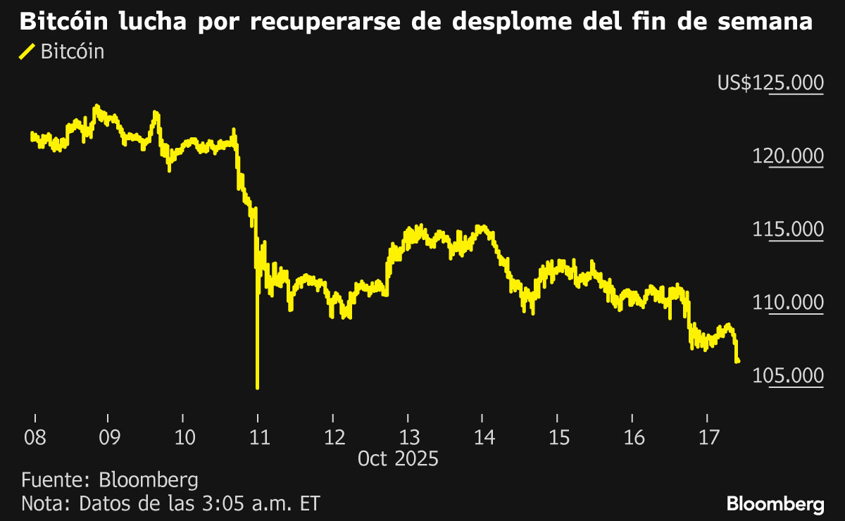 El bitcóin, que durante años fue visto como un refugio frente a la volatilidad y la inflación, volvió a poner en duda ese papel tras desplomarse más de 6% en la última semana y caer por debajo de los US$105.000 en Londres. La liquidación masiva de posiciones, impulsada por las tensiones entre EE.UU. y China y el deterioro del apetito por el riesgo, borró cientos de miles de millones del valor de mercado. Mientras el oro y la plata alcanzan nuevos máximos, el llamado “oro digital” no logró sostener su promesa de estabilidad en tiempos de incertidumbre.