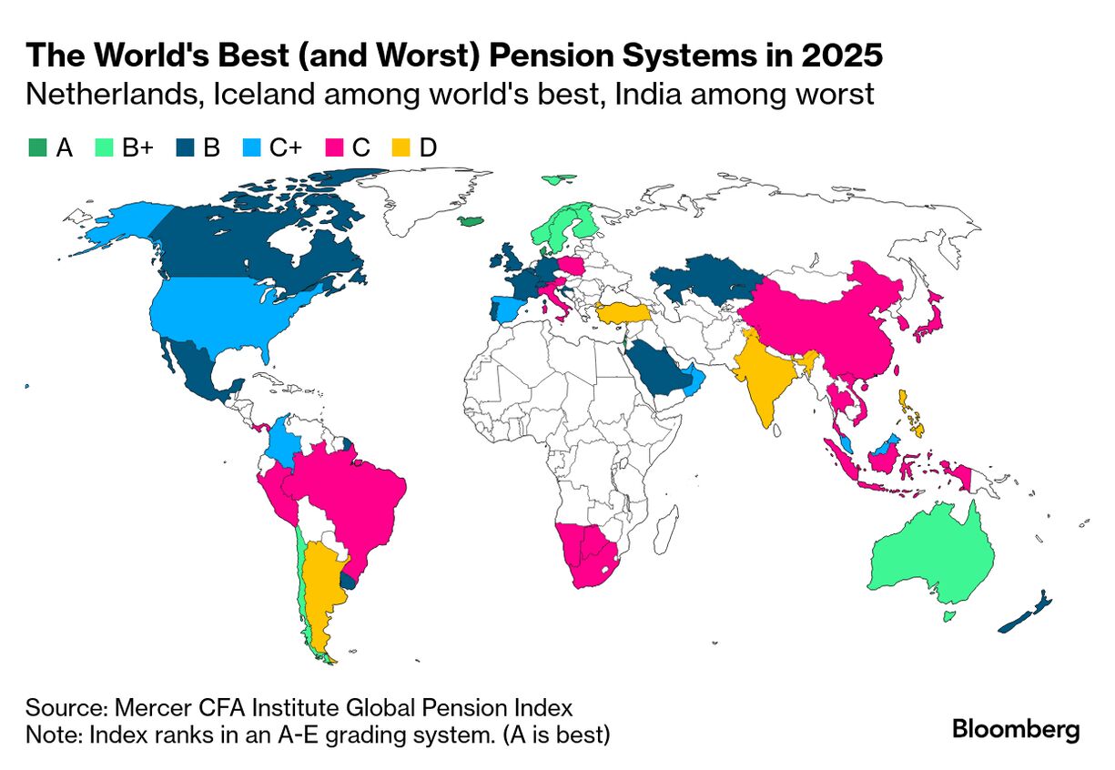 To be sure, there are plenty of countries grappling with problems ranging from underfunded pensions to longer waits for payouts and even young people opting out of payment plans. But Singapore’s top five ranking shows it’s making progress. The US (ranked 30th) and India (with a D grade) may want to take note.—Ainsley Thomson