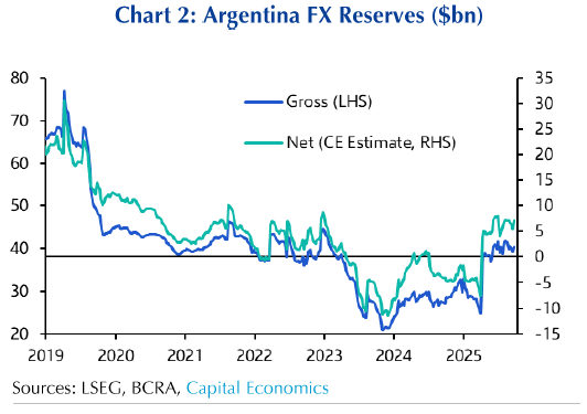 Even so, as Sperrfechter notes, while this policy mix would be the right move, itmight not fully restore external competitiveness. Should Milei’s party fare poorly, there is a real risk of a sharp and disorderly peso correction that would undermine Bessent’s assertion that the currency is undervalued. As Robin Brooks of the Brookings Institution notes, the Treasury secretary is hardly oblivious to the risk of the odds turning against him. That justifies making Washington’s support conditional. The election is merely the beginning.