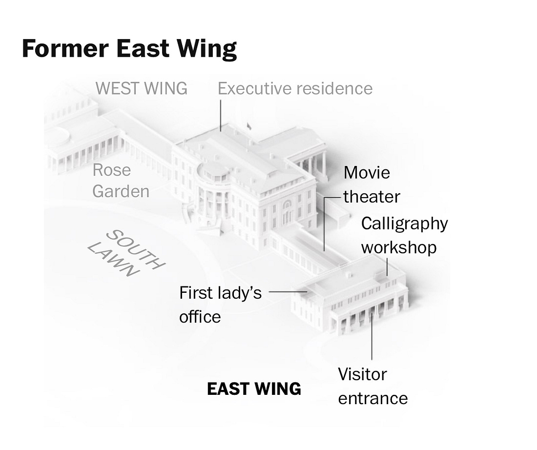 Last week Donald Trump demolished the East Wing, forever scarring The People’s House. We didn’t just lose history. We lost the future. Because the East Wing was also the main visitor entrance to the White House, the location people from all over the world entered for public tours of the White House. Among my cherished memories of raising four children are visits with each of them, more than one with some of them, to the White House. Donald Trump has put an end to that. All tours have been suspended indefinitely. The White House website may be claiming to welcome us to a “Golden Age,” but in reality, Donald Trump has launched a stark, physical attack on democracy for no good reason, simply because he can. Americans need food on their tables and affordable medical care. Instead, they will get a gilded ballroom for the ultra-wealthy. This is the message from the president as we enter the week ahead. His house, not our house. It’s hard to avoid the thought that no homeowner, and certainly not a temporary tenant, plans a major renovation like this to a house they’re planning to leave in three years.