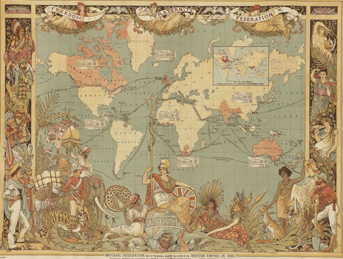 A world map showing the extent of the British Empire in 1886.