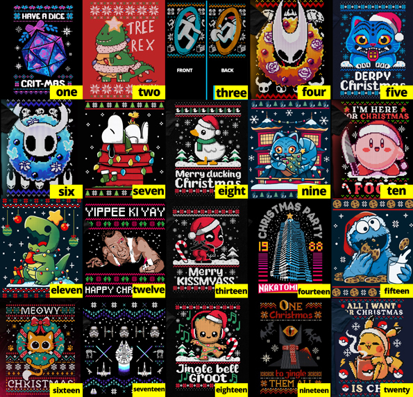 Christmas this year just feels like it will be different, it feels... special! We love seeing Qwerteebot drinking too much motor oil (his version of eggnog) and singing Christmas Carols! The best thing to wear of course, party or no, is an UGLY QWERTEE CHRISTMAS SWEATER! They're our favourite items to sell every year, and we love hearing feedback from all of you, which designs you think are best and should be on sale! So just click here to vote for your 3 favourites from the designs below and keep an eye out, because the ones you love might be on sale VERY SOON!