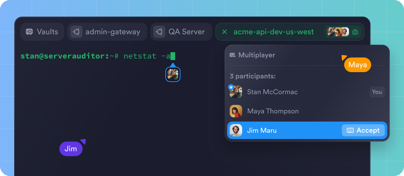 Multiplayer in Termius uses WebRTC to create a secure, end-to-end encrypted, peer-to-peer connection between teammates. However, until now, collaboration sessions have often failed to connect when participants were behind strict NAT or firewall configurations.