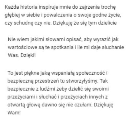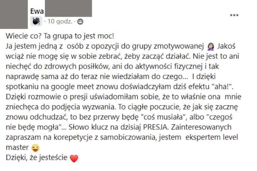 Znajdziesz w niej osoby, które rozumieją, przez co przechodzisz, bo mierzą się z tymi samymi lub podobnymi wyzwaniami. Jestem w niej też aktywna ja i 4 psychodietetyczki.