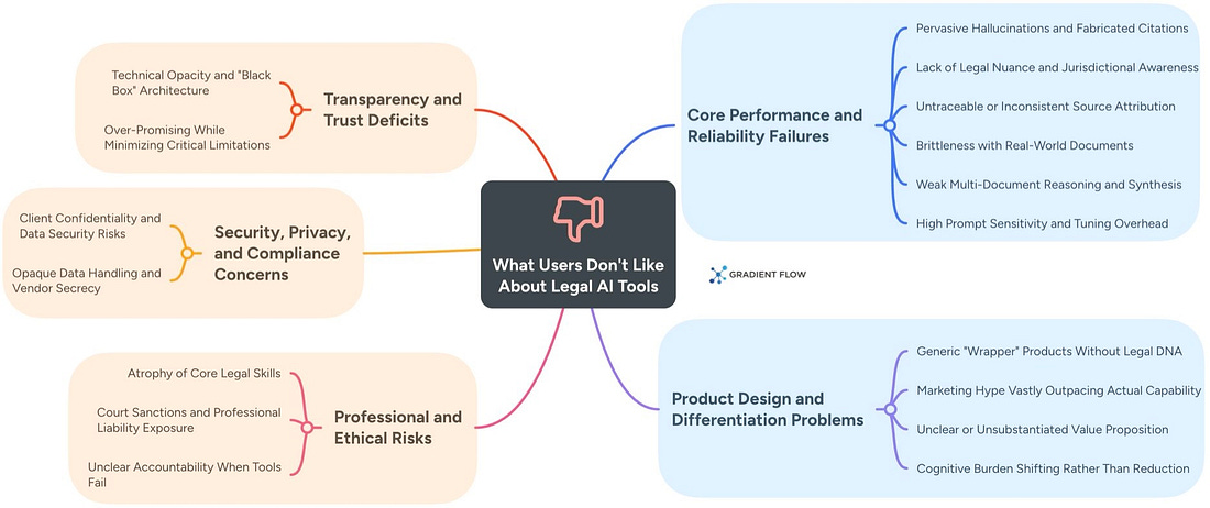 Legal AI Unpacked: What Works, What Fails, What’s NextLaw firms were early adopters of tools for searching and classifying large document collections, so their current enthusiasm for generative AI follows a familiar pattern. Business press coverage reinforces this interest: articles forecasting the disruption of knowledge work routinely single out legal services as particularly vulnerable to automation, given the profession’s reliance on text-intensive research, drafting, and document analysis. The view from online forums is much more guarded. Today’s tools still miss basic requirements for high-stakes work: they invent citations, blur jurisdictional boundaries, and falter on messy, real-world documents. Most Legal AI products are nothing more than thin layers over general-purpose models, with limited legal tuning, opaque behavior, and weak audit trails. Integration with older systems is brittle, confidentiality constraints are strict, and reliability is uneven. The prevailing pattern is cautious use for drafting, summarizing, and triage — always with human verification. This tension between potential and peril makes the legal industry an interesting case study. While today’s foundation models are far from perfect, their adoption in legal settings offers a preview of how other high-stakes professions will grapple with the technology’s limitations. What follows maps the current landscape: where generative AI is gaining traction in legal practice today, the points at which it fails, and the engineering and governance work required to close the gap between prototype and production. For any leader considering AI’s role in knowledge work, the legal field provides an indispensable, if cautionary, guide. Where Legal AI Works TodayDocument Review & AnalysisEach of the following address a distinct workflow: contract review happens before deals close, summarization turns lengthy records into readable briefs, and discovery sorts evidence during litigation. Contract Review and Risk Analysis. Law firms deploy generative AI to parse contracts, classify clauses (indemnity, termination, change-of-control), extract obligations, spot departures from standard terms, and assign risk scores. Roughly 28% of in-house teams rank this as AI’s highest-value application.