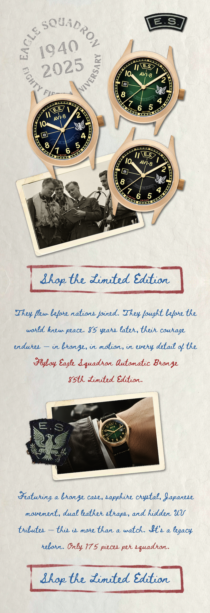 No longer want to receive these emails? Unsubscribe. You can also Manage Preferences.AVI-8 Watches 15/f, Kowloon Center, 29-39 Ashley Road, Tsim Sha Tsui, Hong Kong