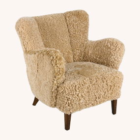 Style of Frits Hansen Lambs Wool Lounge Chair