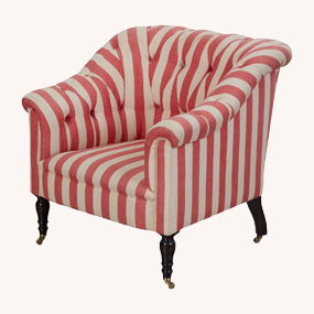 A George Smith Button Tufted Red and Cream Striped Linen Upholstered Club Chair
