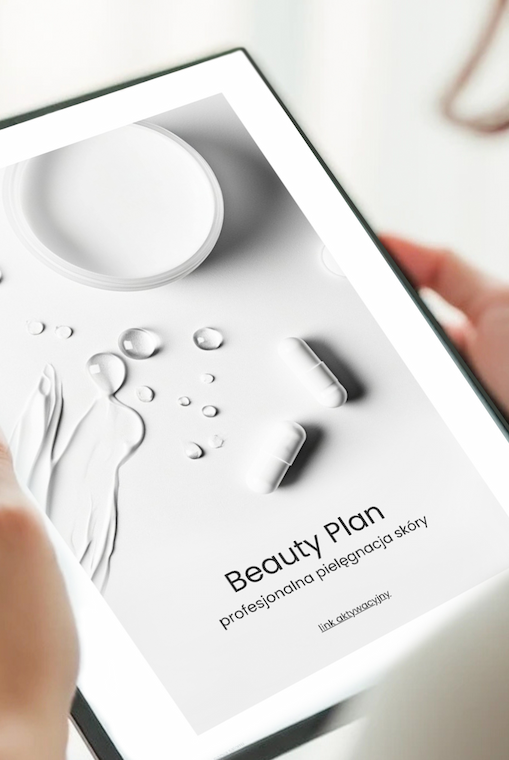 – elektroniczny arkusz dla kosmetologów. Kompleksowy, edytowalny dokument (28 stron), który pozwala stworzyć plan obejmujący pielęgnację domową, zabiegi gabinetowe, dietę, suplementację, elementy stylu życia.