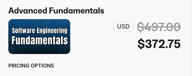 Not only do you gain access to Software Engineering Fundamentals Beginner, Intermediate, and Advanced, but you'll gain access to a cohort mentorship for modern software engineering and AI. This cohort runs in January with dedicated live calls, a community with other engineers in the same program, and a dedicated curriculum.