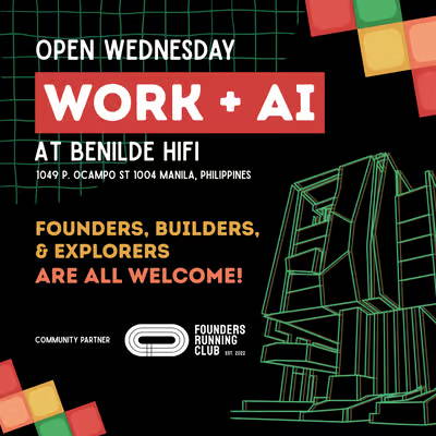 Open Wednesday: WORK + AI @ Benilde HiFiis a gathering of founders, builders, and curious minds for a day of co-working, conversations, and collaboration around AI. Free WiFi. Bring your own food & drinks. #Manila