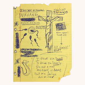 Kurt Cobain Nirvana Notebook Page – Yellow Composition Sheet with Doodles