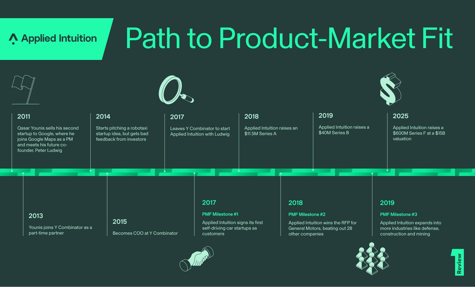 This week, Qasar Younis shares all the personal and professional moves he made to found Applied Intuition. For Qasar Younis, the path to product-market fit dates back to childhood. He grew up in a Detroit suburb, where the auto industry was the backdrop to his whole life: His father was an auto worker whose job security wavered as production moved to China. Younis studied engineering at the General Motors Institute. He worked part-time on the factory floor. Younis always knew he wanted to be a founder, inspired by watching his dad reclaim his autonomy. “He started his own small business, which he still runs today. That’s been hugely informative to me. I saw him get his dignity that way. He really became a master of his own destiny,” he says. So he designed his career to optimize his own founder training: engineering jobs at General Motors and Bosch, business school, a stint at a holding company to “learn finance,” investing at Y Combinator. He tried his hand at starting two companies, the second of which he sold to Google. At Google he’d meet Peter Ludwig, a PM and fellow Detroit kid who was also interested in starting a company. Their shared experiences, from growing up in Motor City to building sensors for a Google Street View car, materialized in a startup idea that only they could pursue: software for automakers developing self-driving cars, which would become Applied Intuition.