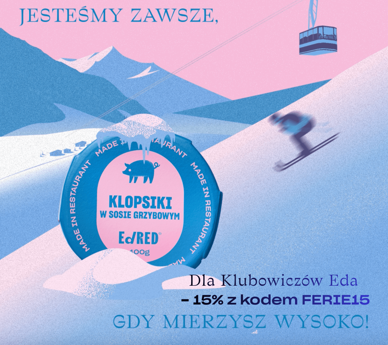 Drogi Klubowiczu Eda! Cieszymy się, że z nami jesteś, dlatego w tym gorącym, a jednocześnie mroźnym okresie, chcielibyśmy Ci podziękować ❤️ Z tej okazji postanowiliśmy przygotować dla Ciebie specjalny kod rabatowy -15% na Twoje zamówienie w naszym sklepie.Kod możeszy wykorzystać od teraz do 1.02 na hasło FERIE15 Mamy nadzieję, że ten prezent umili Ci czas niezależnie czy będziesz szusować po górskich stokach, czy spędzał czas w domu z kubkiem herabty
