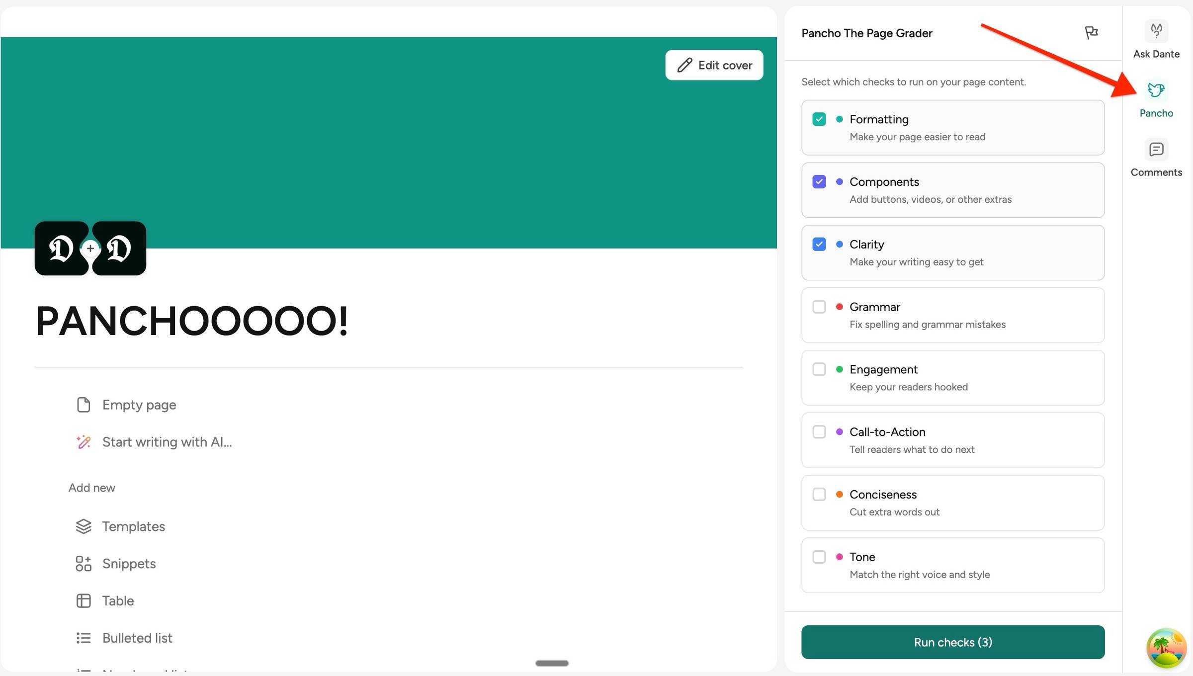 One click and it checks your page across 8 different categories.... formatting, clarity, grammar, engagement, components, conciseness, tone, and (the big one) whether you actually have a call-to-action that tells your buyer what to do next.