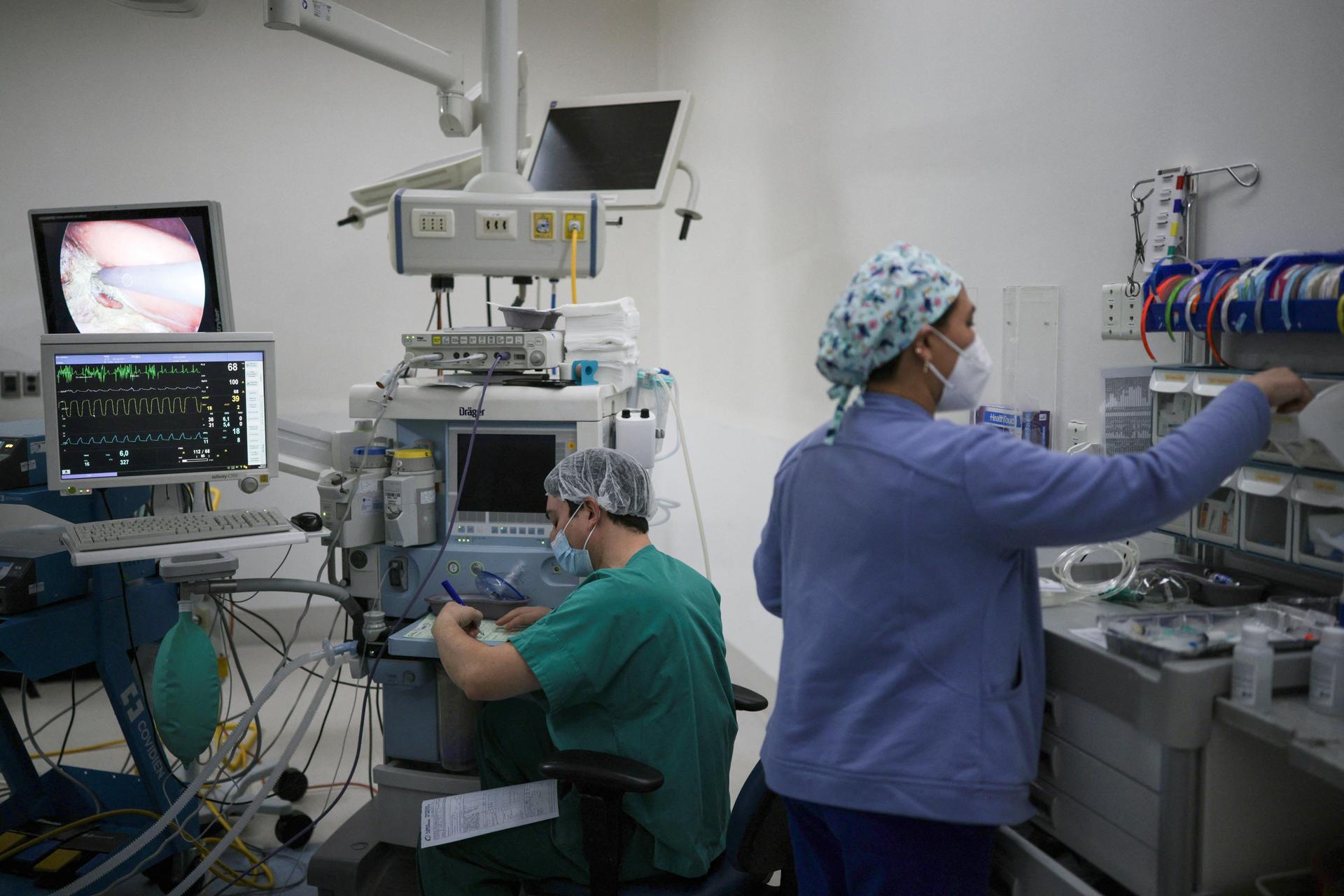 Members of a surgical team prepare medications and documentation for a patient using an autonomous, AI-guided camera in Santiago, Chile. REUTERS/Pablo Sanhueza |