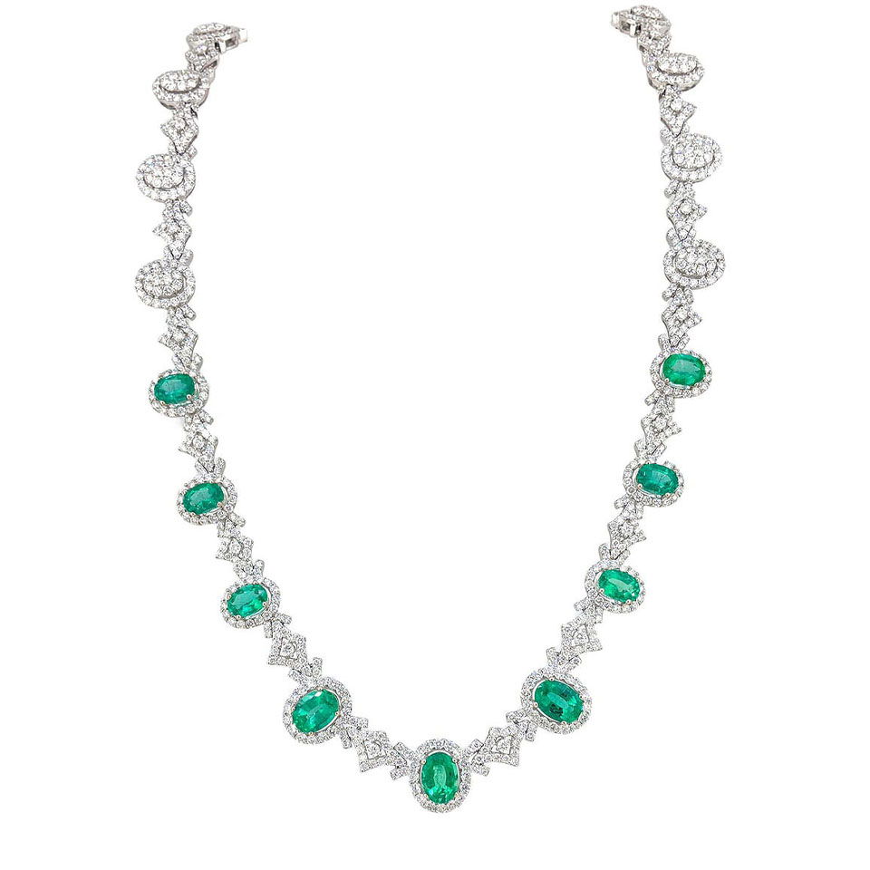 18K White Gold Ladies Necklace with 8.16ct Emerald and 14.30ct tw Diamonds