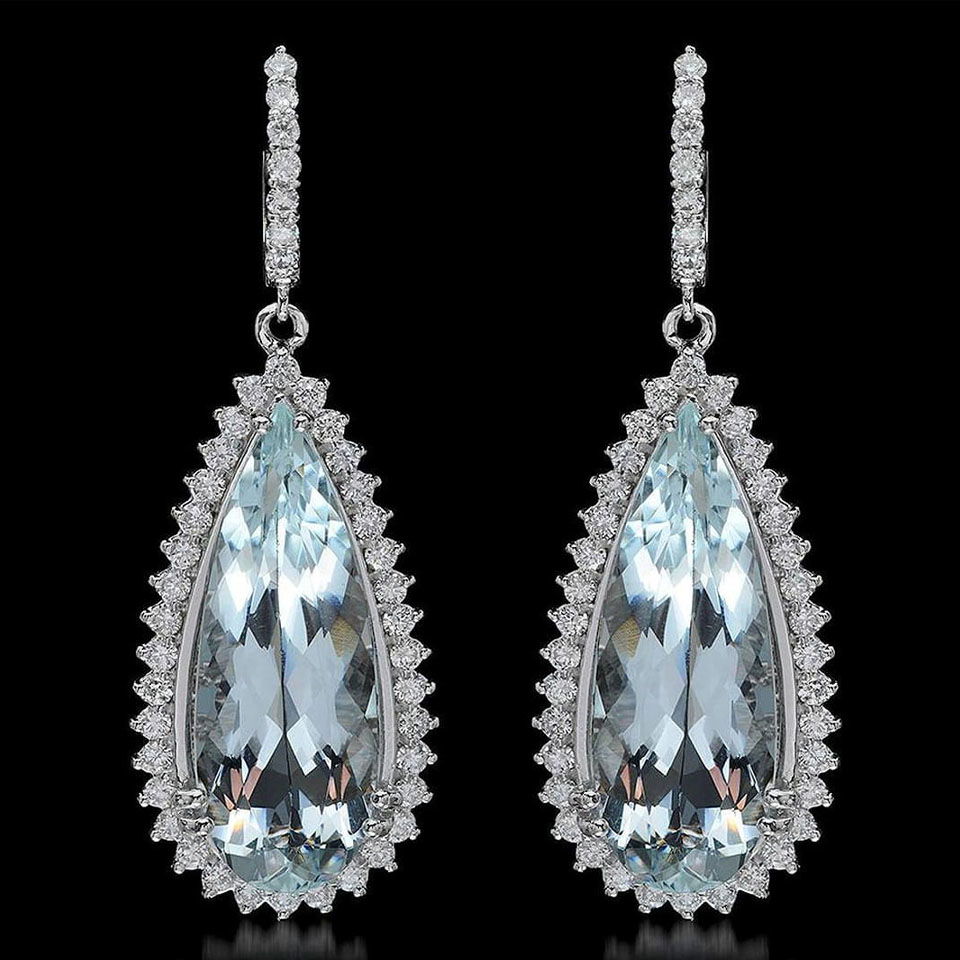 14K Gold 22.94ct Aquamarine 2.460ct Diamond Earrings