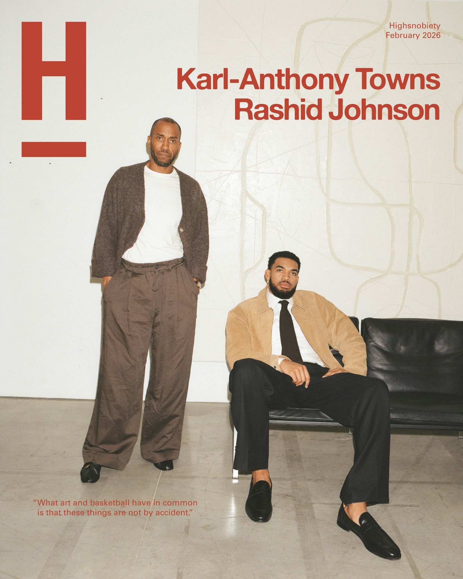 When the Artist Met the All-Star The first piece of art that Knicks player Karl-Anthony Towns ever bought was from the artist Rashid Johnson’s “Anxious Men” series. When the two finally met in person last year, at Johnson’s Guggenheim show, it was quite the powerhouse meet-cute. Per Towns: “It felt like the world was at a standstill.” In our latest Frontpage cover story, Highsnob brought Johnson and KAT back together for a conversation on their respective crafts — and the exciting intersection of art and basketball where the pair now find themselves at the center. Read more… |