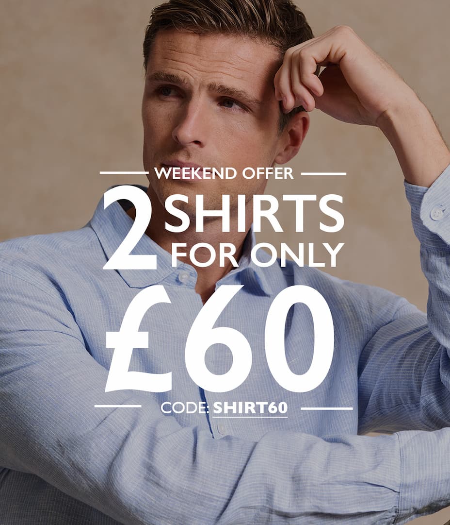 Use code SHIRT60 and get any 2 Shirts for only £60.