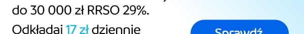 Oferta produktowa pożyczka Samoobsługowa „naCoDzień” jest dostępna od 14.01.2026 r. dla nowych klientów i dotyczy pożyczki przez internet o całkowitej kwocie pożyczki od 1000 zł do 30 000 zł, spłacanej w 12, 18, 24, 36, 44 lub 48 ratach miesięcznych. Liczba możliwych rat jest zależna od wybranej całkowitej kwoty pożyczki. Warunkiem udzielenia pożyczki jest pozytywny wynik oceny zdolności kredytowej konsumenta. Rzeczywista Roczna Stopa Oprocentowania (RRSO) wynosi 29%, całkowita kwota kredytu (bez kredytowanych kosztów) 9300 zł, całkowita kwota do zapłaty 11994,86 zł, oprocentowanie stałe 7%, całkowity koszt kredytu 2694,86 zł (w tym: prowizja 1887,88 zł, opłata przygotowawcza 40 zł, opłata za elastyczny plan spłat 0 zł, odsetki 766,98 zł), 23 miesięczne równe raty w wysokości 499,79 zł i ostatnia, 24. rata w wysokości 499,69 zł. Kalkulacja z dnia 14.01.2026 r. na reprezentatywnym przykładzie pożyczki dla tej pożyczki. Kwota 17 zł dziennie jest symulacją wynikającą z podzielenia Całkowitej kwoty do zapłaty przez konsumenta przez liczbę dni (uśredniona liczba dni w miesiącu to 30) przypadających na okres spłaty w 24 miesiące i zaokrąglenia w górę do pełnych złotych.