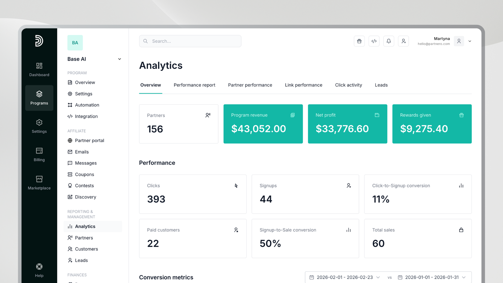 Understanding what drives performance is the foundation of a successful partner program. We’ve updated and expanded analytics so you can see clearer trends, make decisions faster, and focus on the metrics that truly reflect growth and partner impact.