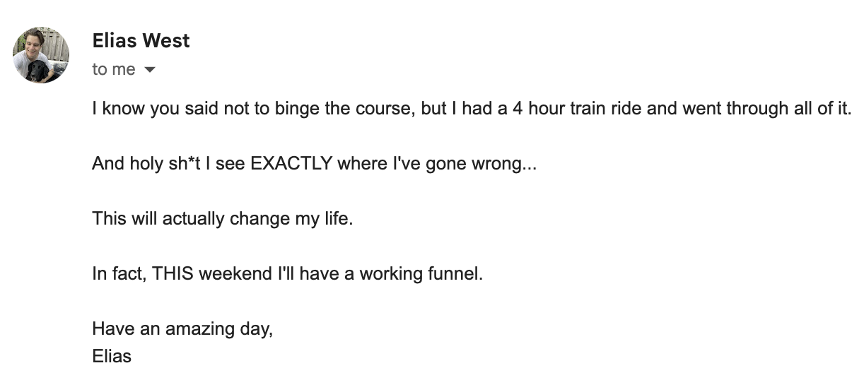Make sure to jump on the live call we'll be having next week AFTER you've watched the course and played around with the techniques.