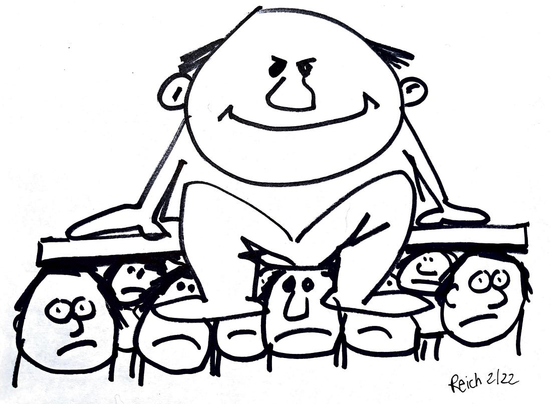 Friends, When the dark history of this sordid era is written, among the shameful culprits will be multi-billionaire Larry Ellison, his son David, Shari Redstone, former owner of Paramount, and David Zaslav, the current CEO of Warner Bros Discovery. Today, Zaslav is being lauded by the business community as a genius for selling Warner Bros Discovery to the Ellisons’s Paramount for $111 billion, more than double its valuation in September. Why would the Ellisons spend their billions to buy Warner Bros Discovery? Wealth and power. Assuming the deal closes, they’ll own CBS News, Comedy Central (home of John Stewart), HBO (John Oliver), and CNN. And with Trump’s help, Larry Ellison is also the lead investor in TikTok. Pause for a moment and think how huge and sudden is this emergence of a new media giant — and its profound potential for silencing criticism of Trump. I don’t mean to suggest that John Stewart or John Oliver will be silenced. But their contracts may not be renewed (look what happened to Stephen Colbert). The algorithm on TikTok may be ever-so-slightly adjusted to reduce Trump criticism. And a small army of producers and correspondents on CNN may be more careful about what they report, or stories critical of Trump may be axed, as is now happening on CBS News. Larry Ellison is the fourth-richest person in America. He also owns Oracle, which runs much of the digital backbone of the nation's commerce and government. The Ellisons are Trump allies and suck-ups, which is how they’ve so rapidly created a new rightwing media empire. Even before the Ellisons sweetened their offer for Warner Bros Discovery last week, they proclaimed their “confidence in the speed and certainty of regulatory approval for its transaction.” Translated: Don’t worry that we’re creating a gigantic media monopoly. Antitrust laws won’t touch us. We’ve got Trump’s Justice Department in the bag. On Tuesday night, David Ellison attended Trump’s State of the Union address as a guest of Trump ally, South Carolina Republican Senator Lindsey Graham. (Graham tweeted out a photo of the two men making Trump’s signature “thumbs-up” gesture ahead of the speech.) Trump cares more about TV news than he does about his presidency. In fact, TV news is his presidency. He’s repeatedly blasted CNN as “fake news” and publicly demanded it be turned over to new owners. Trump was instrumental in the Ellison’s takeover of CBS (along with Comedy Central), and of TikTok. Last summer, as Shari Redstone and other of Paramount’s previous owners sought federal approval to sell the company to the Ellisons, they announced the end of late night host Stephen Colbert’s CBS show — which will end its run in May. They cited economics, but Colbert’s has been the top-rated late night show on network television — and he has been a lacerating satirist of Trump. Colbert called the cancellation a "big fat bribe,” which it surely was. To win further support from Trump for the sale, David Ellison promised to end diversity, equity and inclusion initiatives at CBS. He has added a rightwing ombudsman, Kenneth Weinstein, the former head of a conservative think tank, and named Bari Weiss, founder of the center-right opinion and news site The Free Press, editor-in-chief of CBS News. Since Weiss took over, at least six out of 20 “CBS Evening News” producers have left. She named a bunch of new contributors, including the anti-aging influencer Peter Attia (who has subsequently resigned over his ties to Jeffrey Epstein). She declared “We love America” a guiding principle. And replaced “Evening News” anchors John Dickerson and Maurice DuBois with Tony Dokoupil — best known for hassling the writer Ta-Nehisi Coates for his “extremist” belief that apartheid is morally wrong. In December, Weiss axed a “60 Minutes” report about Venezuelans being deported by the Trump administration to El Salvador’s notorious CECOT prison hours before it was set to air — a move that Sharyn Alfonsi, long-standing “60 Minutes” correspondent who reported the segment, claimed was for “political” reasons. (The segment later aired on January 18, drawing over 5 million viewers.) As Trump told Dokoupil recently in a rambling nearly 13-minute interview, had Kamala Harris won the presidential election in 2024, “you probably wouldn’t have a job right now.” Moments after that rambling interview, White House press secretary Karoline Leavitt conveyed Trump’s threat that “if it’s not out in full, we’ll sue your ass off.” CNN was moving to the right even before the Ellisons got their hands on it, but the move proved disastrous. In 2022, Zaslav put Chris Licht in charge, who told CNN’s staff he wanted less criticism of Trump and the Republican right — instructing them to stop referring to Trump’s “Big Lie” because he thought the phrase sounded like a Democratic talking point, telling producers to downplay coverage of the first hearing of the congressional committee investigating January 6, and arranging the infamous CNN town hall with Trump, which gave the disgraced ex-president a platform to make his comeback. CNN’s rightward lurch harmed CNN’s ratings — its primetime show ratings fell 25 percent — causing Zaslav to fire Licht. Since then, CNN has undergone rounds of cuts under a series of owners seeking to reduce debt. Paramount will be its fourth corporate parent in under a decade. * It has happened so suddenly most Americans still haven’t noticed: A new pro-Trump media empire — CBS, CNN, HBO, Comedy Central, and TikTok — all under the control of Trump crony Larry Ellison and his son David. The billionaires are flipping media companies like playing cards. They don’t give a fig for the public interest, or about the lives of the producers, correspondents, journalists, and investigative reporters that are being turned upside-down. To them, it’s all about accumulating even more wea
