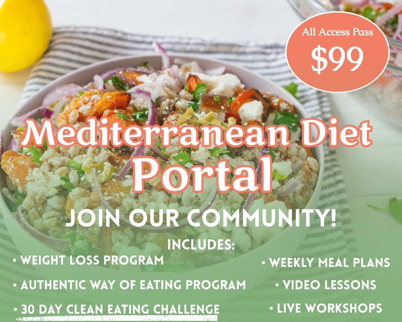 For just $99/year, you’ll gain access to all of our wellness programs designed to help you achieve your health and lifestyle goals. Whether you’re looking to lose weight, learn clean eating habits, or fully embrace the Mediterranean lifestyle, our membership offers everything you need to succeed—all in one place!