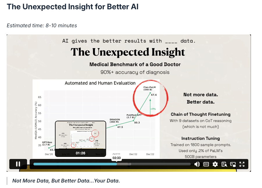 Increasingly, the AI models that we use are getting better not by adding more data, but by adding specific data sets. With only 0.2% of additional specific context added to a model, it performed 17% better!