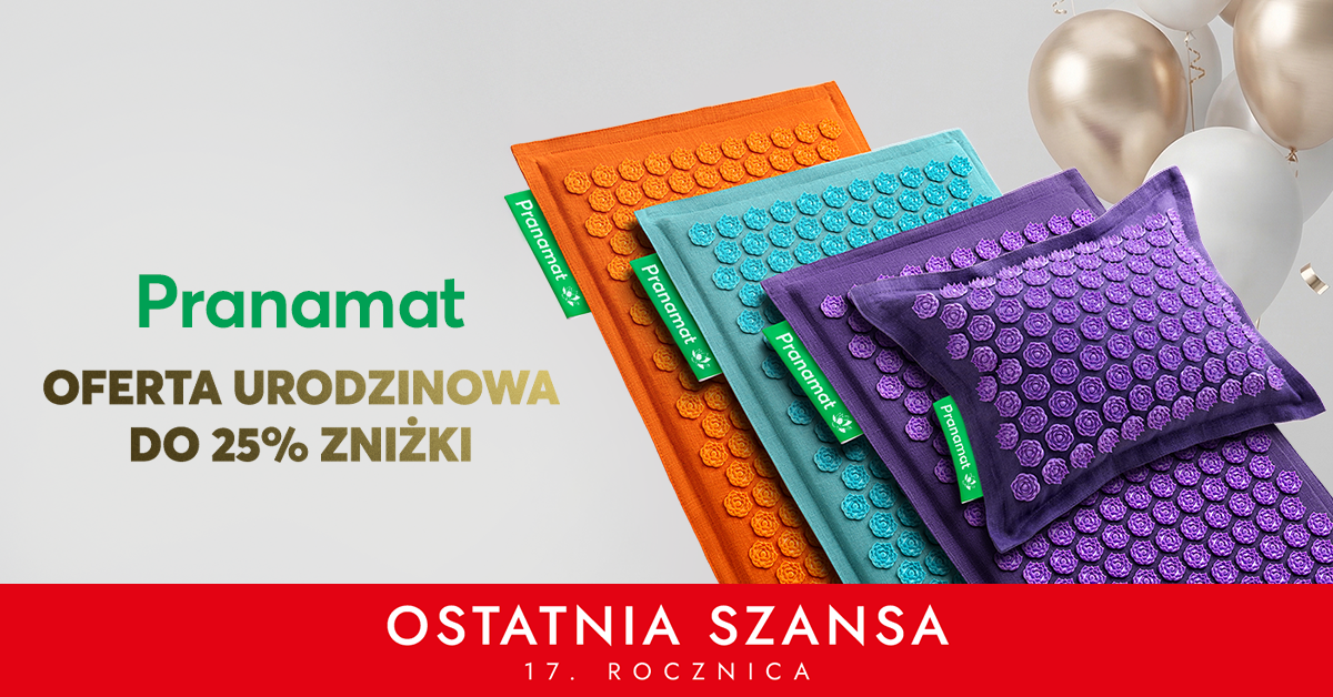 Jeśli myślałeś o Pranamat, to jest właśnie ten moment. Nasza oferta specjalna z okazji 17. urodzin dobiega końca i to Twoja ostatnia szansa na zakupy w najlepszej cenie.
