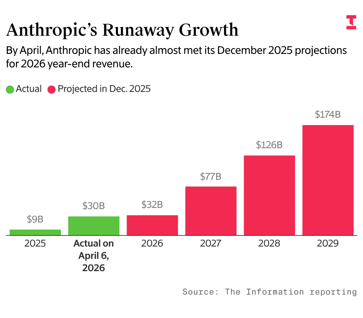 What could stop Anthropic now? The maker of the Claude chatbot said Monday it is generating more than $30 billion in annualized revenue, up from $19 billion about a month ago and more than triple its year-end level. At that pace, the company is on track to surpass its mid-December projection of $32 billion in annualized revenue by the end of this year—and could do so eight months early!