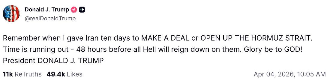 Big caveat: I’m going to talk almost exclusively about Catholicism as a stand-in for True Christianity™.¹ Partly this is because of my own papist biases, but mostly it’s because once you get into Protestantism, everything gets more complicated. It can be hard to delineate what a “True Baptist” believes. Just within the largest Baptist denomination, the Southern Baptist Convention, membership is seen as a matter of voluntary association and churches are understood as a matter of biblical doctrine to have a fundamental and un-infringe-able autonomy. Even then, the underlying theological consensus within the SBC has dramatically shifted within my lifetime. Many Protestant sects also allow a good deal of theological free-lancing. Another denomination, the Church of England, has a famously large tent that covers everyone from extremely conservative theologians on one end to those who don’t even accept a realist conception of God’s existence on the other. Whatever its flaws, at least the Roman Catholic Church has a catechism and a magisterium and a pope. It is possible to say “Catholics believe X” pretty definitively in most cases. With all those caveats in mind, let’s go. You may have noticed an uptick in overt religiosity from the Trump administration around the Iran war. Here is Trump offering glory to God while threatening to kill people: At a press conference on April 6 Trump was asked, “Do you believe God supports the United States’ actions in this war?” His response: