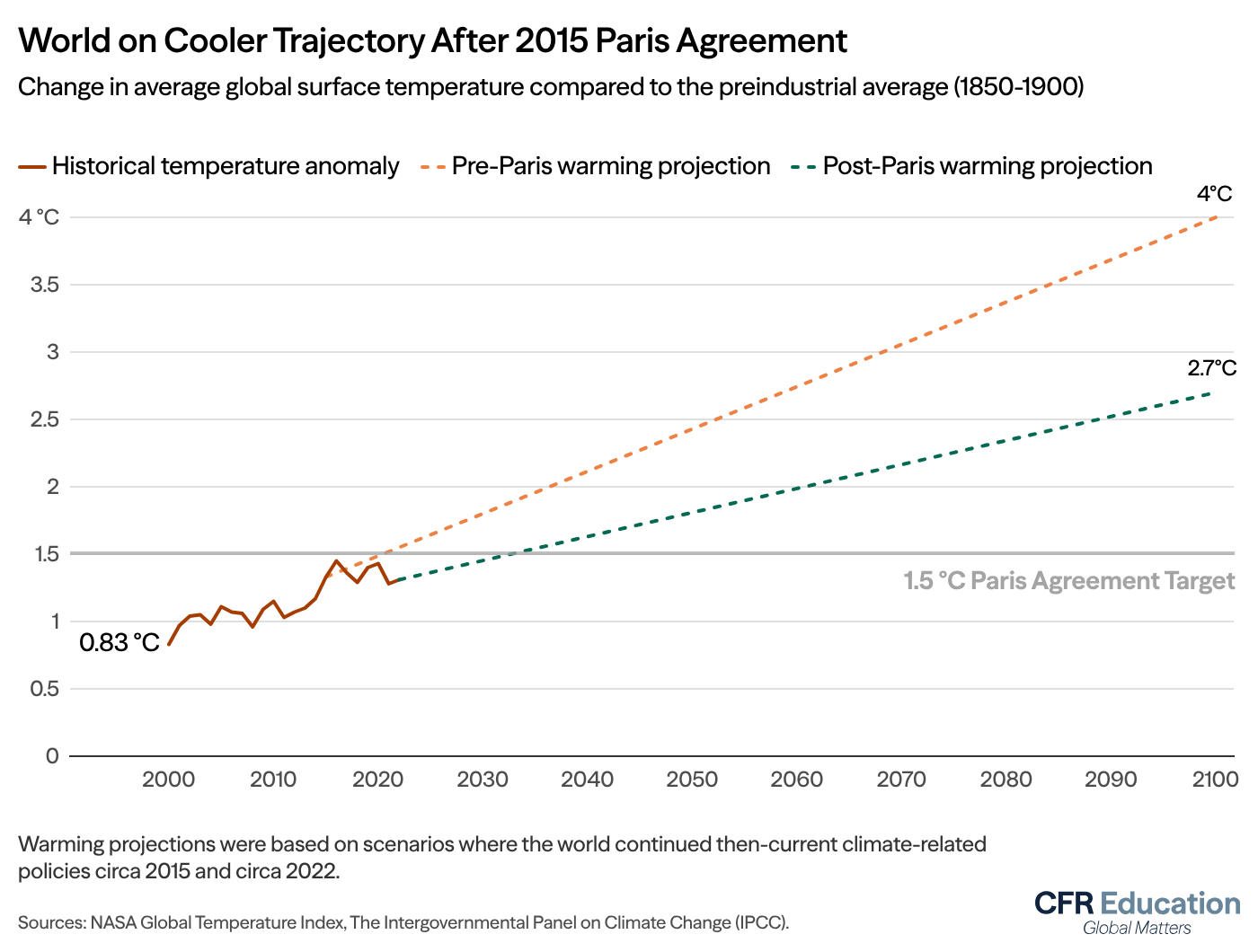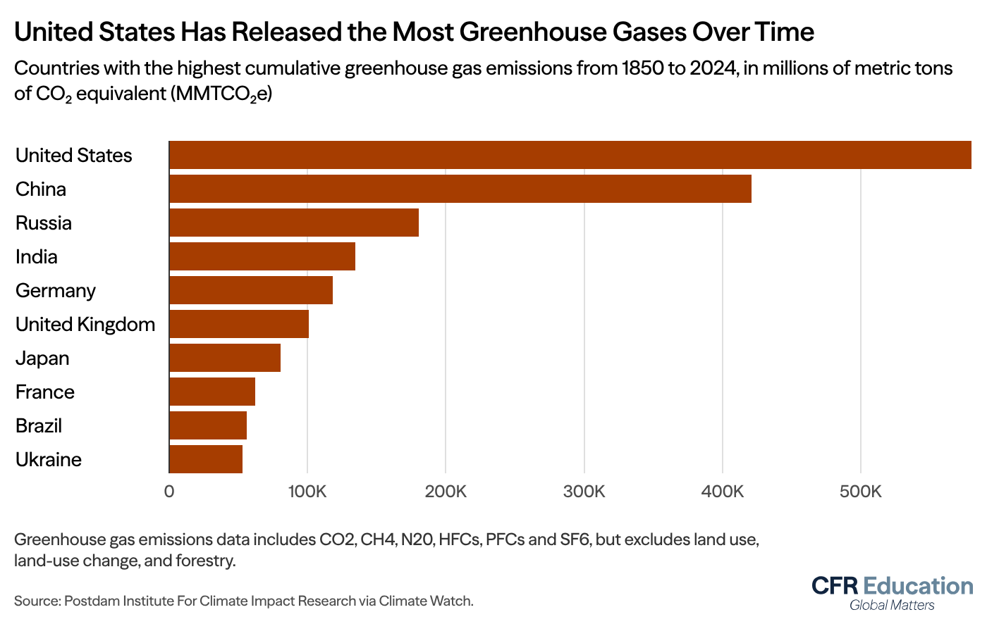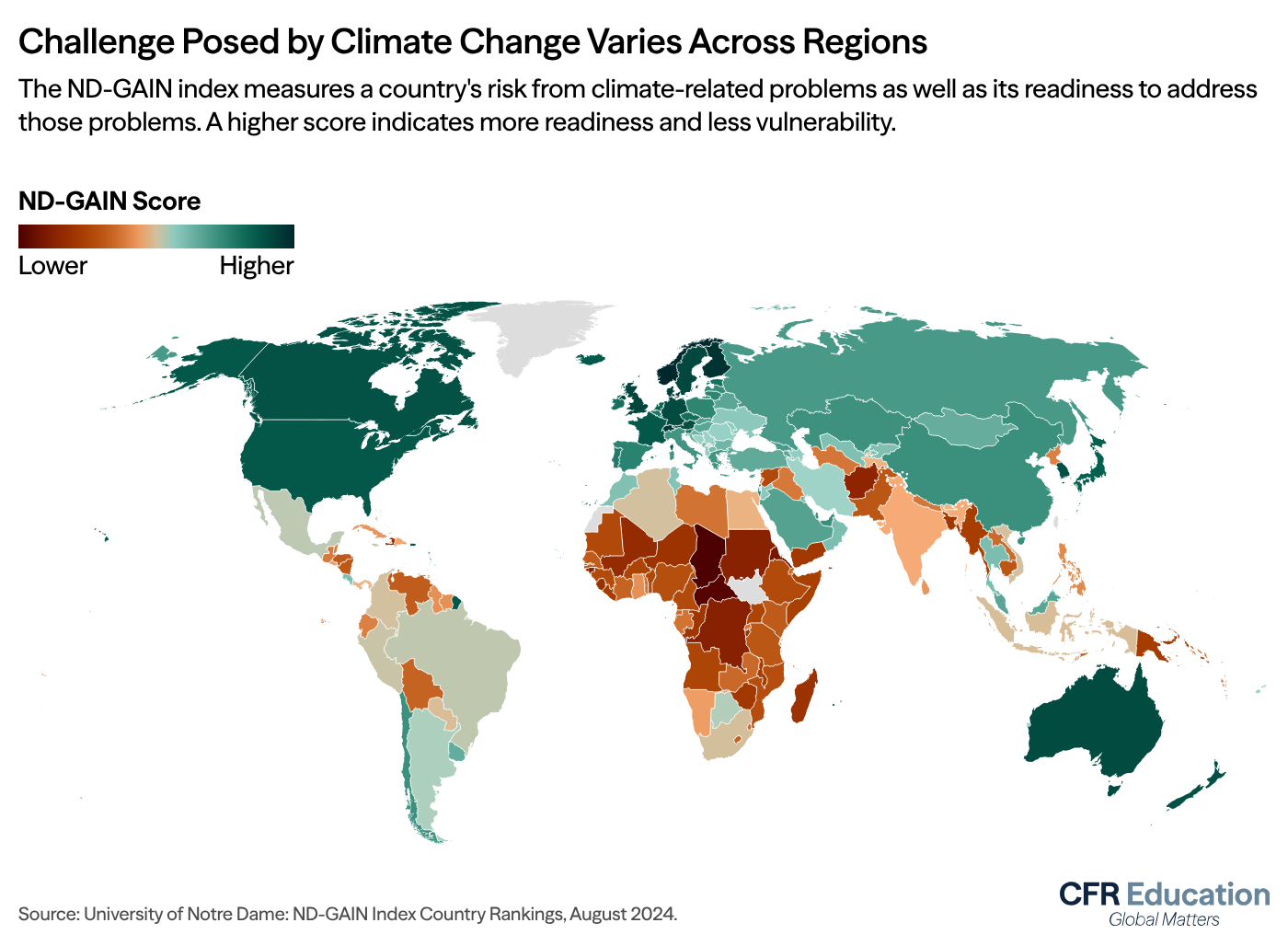 CFR Education uses reputable data sources to create visuals that convey complex concepts. In the climate and energy resources highlighted in this newsletter, you will find maps, charts, and graphs to teach concepts such as: