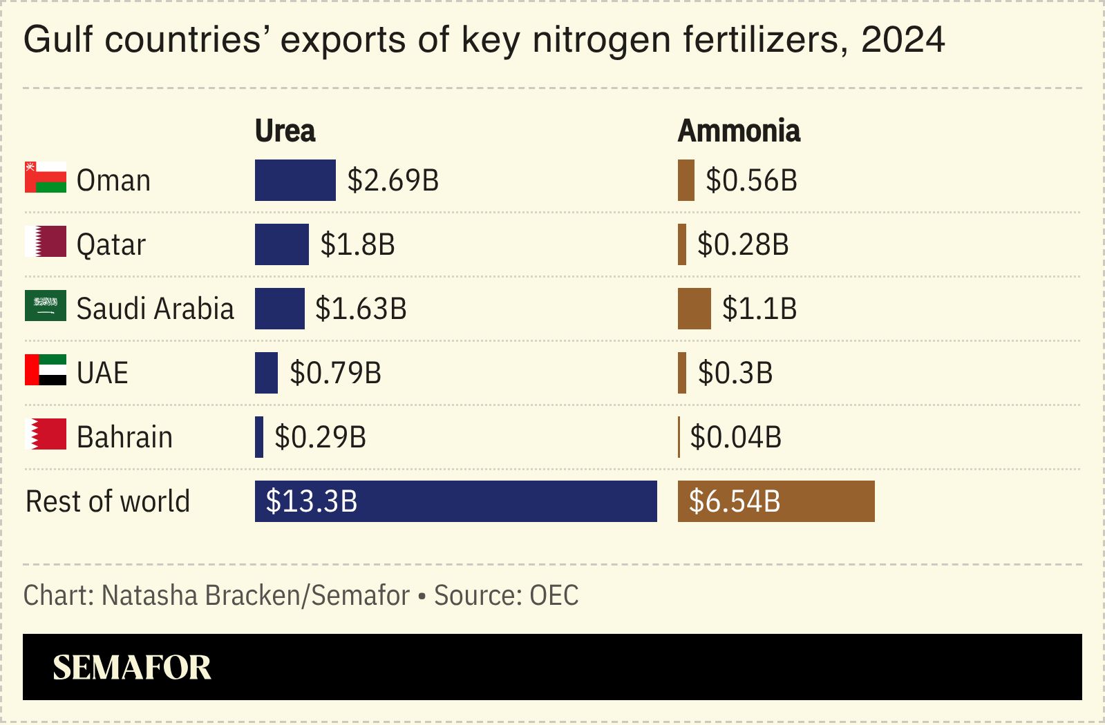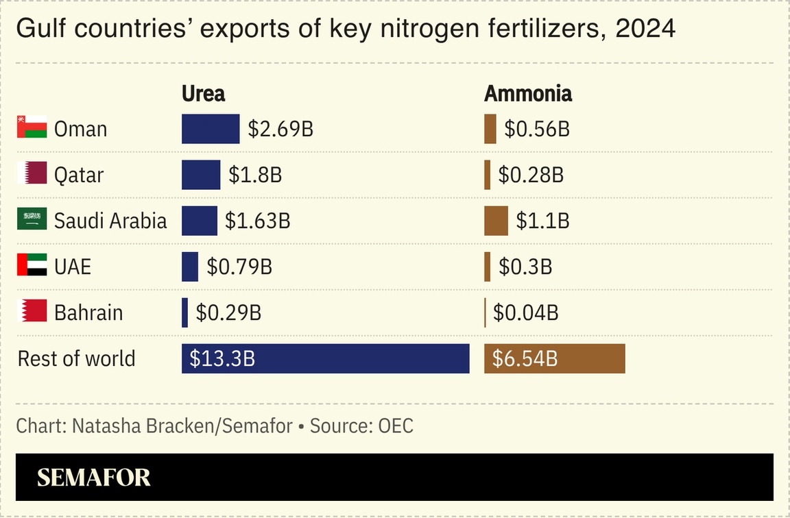 Throttled traffic in the Strait of Hormuz is highlighting the grip hydrocarbons’ hold on global food production as a result of reliance on fossil fuel-based fertilizers, but a new project in Latin America could pave the way for the production of low-carbon alternatives at an industrial scale. Green fertilizer developer Atome will go ahead with a 260,000-ton-per-year plant in Villeta, Paraguay, the first industrial-scale facility of its kind to hit that milestone, CEO Olivier Mussat told Semafor. The plant will feed on renewable power from Paraguay’s vast Itaipu dam to produce hydrogen by splitting water through electrolysis, which is then combined with nitrogen to create zero-carbon ammonia. The plant is expected to start supplying fertilizers to Latin American markets by early 2029, offering some respite to a region that is critical to global crop exports yet dependent on fertilizer imports. “What [the war] is showing you is that there is a systemic problem,” Mussat said. “A problem of security of supply.” |